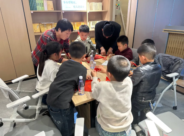 隨后,15分鐘沉浸式共讀環(huán)節(jié),家長與孩子共讀贈送的兒童繪本,讀完后結(jié)合“綠書簽”理念暢談閱讀心得與護(hù)苗感悟。最受孩子們歡迎的當(dāng)數(shù)護(hù)苗創(chuàng)意手工實踐環(huán)節(jié),非遺體驗與護(hù)苗主題深度融合,孩子們手持剪刀創(chuàng)作綠書簽剪紙,用畫筆勾勒“我心中的好書”插畫,將對健康閱讀的向往與非遺技藝的魅力融入作品之中。
